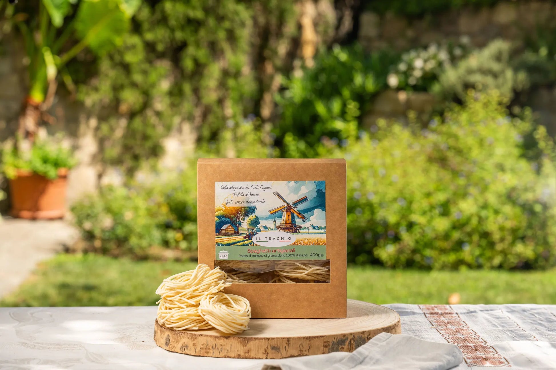 I nostri spaghetti artigianali bianchi sono realizzati con semola di grano duro 100% italiana, trafilati al bronzo e a lenta essiccazione.